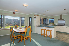 Over 5 acres of seclusion with surprising expanses of flat land with a huge car pad, large double garage and a separate workshop and carport for additional vehicle or hobby use. Also large areas of native bush below with tracks for easy exploration.