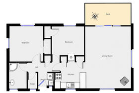 2 bedrooms, open plan living, all day sun, indoor / outdoor living and room for a garden out back.